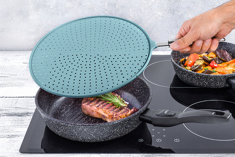 Антиразбрызгиватель от Elan Gallery предназначен для защиты поверхностей от появления следов жира. Размер изделия – 48,5х32,8х1,6 см, диаметр – 32 см. Это универсальное приспособление, которое подойдёт для большинства стандартных сковород и кастрюль средних и больших размеров. Выполнен из пищевого силикона – он выдерживает высокие температуры, не выделяет вредных веществ и полностью безопасен для здоровья. Температурный диапазон – от -40 до +130 градусов. Легко отмывается и не впитывает посторонние запахи. Крышка-сетка защитит вашу плиту, стены и одежду от брызг масла при жарке продуктов или интенсивном кипении. Отверстия на изделии обеспечивают равномерный выход пара. Удобная ручка из нержавеющей стали оснащена петлёй, которая позволит компактно хранить аксессуар на рейлинге или любом крючке. Защитное силиконовое сито поможет вам поддерживать порядок на кухне даже при активной ежедневной готовке. Благодаря лаконичному голубому цвету изделие гармонично дополнит любой интерьер. Не рекомендуется применять абразивные моющие средства. Подходит для использования в посудомоечной машине. Не подходит для использования в микроволновой печи. Антиразбрызгиватель от бренда Элан Галерея станет функциональным дополнением вашего кухонного инвентаря!
