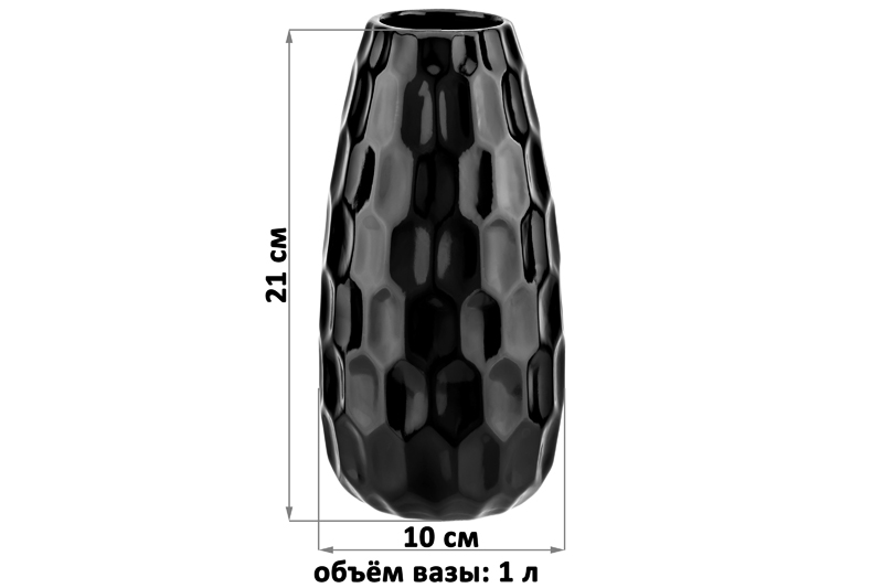 БЫЛО 793 руб! Ваза 21 см 1 л "Соты" черная