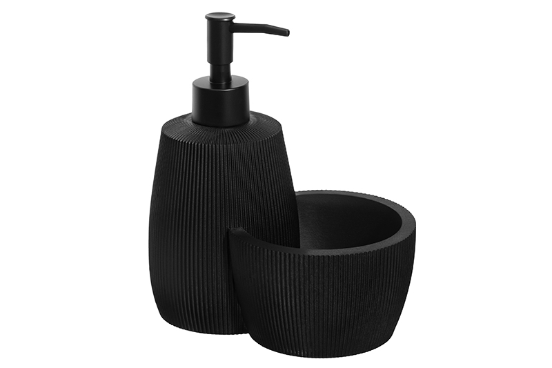 Настольный диспенсер от Elan Gallery подойдёт для хранения жидких моющих и очищающих средств. Размер изделия – 16,2х10,7х18 см, объём – 300 мл. Высота без дозатора – 13 см. Выполнен из полирезина – современного материала, отличающегося лёгкостью и устойчивостью к влаге. Он не выделяет вредных веществ и не впитывает посторонние запахи. Благодаря высокой прочности изделие надолго сохранит привлекательный внешний вид. Рельефная чёрная поверхность имеет песочный эффект и матовое покрытие. Дозатор выполнен из пластика. Он герметичен и надёжно предотвращает проливание. Благодаря красивому дизайну и необычной форме баночка найдёт место в любой части вашей квартиры. Заполните ёмкость жидким мылом или средством для посуды и расположите на кухонной раковине. Имеется отделение для губки – с ним вы можете компактно хранить всё необходимое для мытья посуды. В ванной используйте флакон под гель для душа или шампунь. Универсальную бутылочку можно приспособить под антисептик. Поставьте её на рабочий стол в своей комнате или кабинете, чтобы дезинфицирующее средство было под рукой. Дополнительное отделение можно применить для хранения салфеток, тряпочки для протирки экрана или мелких канцелярских принадлежностей. Не рекомендуется применять абразивные моющие средства. Не подходит для использования в посудомоечной машине. Для очистки изделия воспользуйтесь тёплой водой с добавлением моющего средства. Поставляется в дизайнерской картонной коробке – вам не потребуется дополнительная подарочная упаковка. Декоративный диспенсер от бренда Элан Галерея станет отличным подарком для родных и близких. Это не только практичный, но и эстетичный аксессуар для поддержания гигиены, подходящий под любой интерьер!