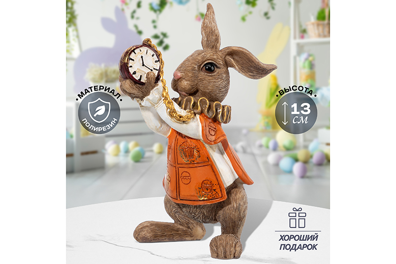 БЫЛО 899 руб! Фигурка декоративная 9,5*7,5*13 см "Кролик с часами"