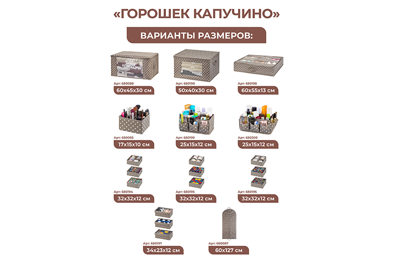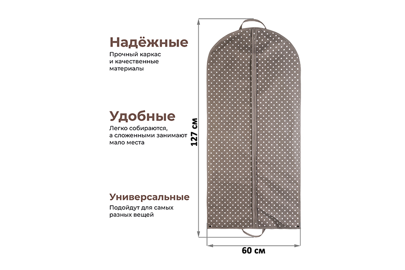 Чехол - сумка для одежды подвесной 60*127 см "Горошек капучино" на молнии