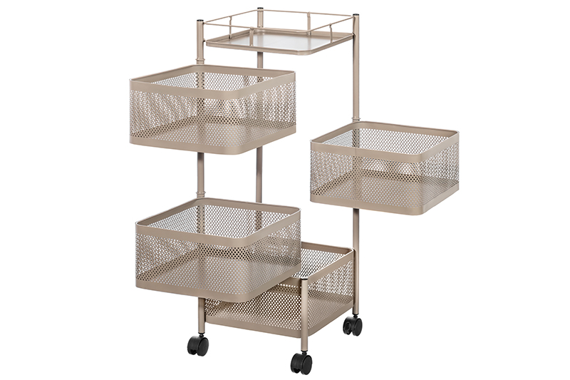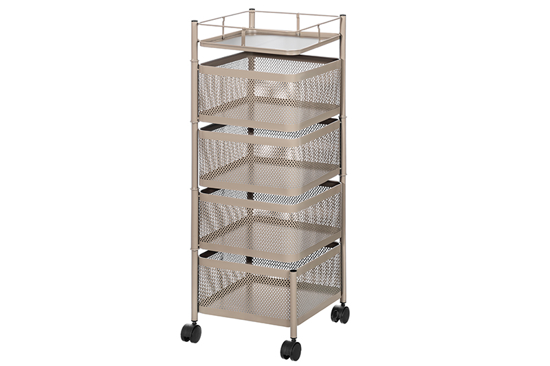 Этажерка 4-х ярусная 27*27*80 см, "Серо-коричневая", с выдвижными корзинами, на колесиках, метал.