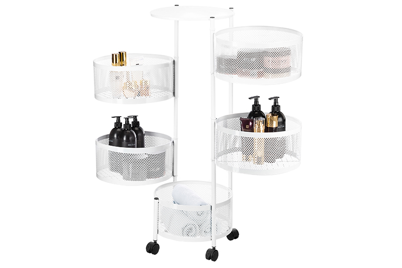 Пятиярусная этажерка ELCASA "Белая" размером 33,5х33,5х90 см на 4 колесах поможет создать порядок и организовать систему хранения в вашем доме. Размер этажерки без колесиков 33,5х33,5х84,5 см. Выполнена из металла. Диаметр каждого круглого ящичка – 30 см, размер – 29,5х29,5х14 см, расстояние между ящиками – 15,5 см. Максимальная нагрузка на одну полочку – 5 кг. Высота от пола до нижней корзины без колес 3,5 см, с колесами – 8 см. Отсеки вращаются по кругу и имеют дно в виде металлической сетки. Благодаря колесикам стеллаж с полочками удобно перемещать из одной комнаты в другую. Система тормоза в виде фиксаторов на 2 колесах позволит устойчиво закрепить положение этажерки в нужном месте. Мебель имеет универсальный дизайн, подойдёт к интерьеру в любом стиле. Мобильную этажерку с корзинками можно использовать для хранения вещей в комнате, на кухне и даже в детской. В прихожей можно положить в неё аксессуары: шапки, перчатки, шарфы и зонтики. Подойдёт в роли обувницы для обуви и тапочек. Высокая этажерка с ящиками будет незаменима в гардеробной или на балконе в роли тумбы. На кухне можно использовать её для хранения овощей и фруктов. Каждая корзина может быть использована под разные фрукты и овощи. Декоративные отверстия на стенках позволяют воздуху проникать внутрь и не дадут продуктам испортиться от недостатка кислорода. В ванной подойдёт для хранения косметичек, бытовой химии или полотенец. Просто поставьте её возле раковины или стиральной машинки. В комнате в неё можно сложить книги, журналы или игрушки, используя как маленький шкафчик. В спальне послужит оригинальным туалетным столиком для баночек с косметикой. Можно использовать как прикроватную тумбочку, поставив на неё растения, лампу или предметы декора. В коллекции бренда ELCASA представлены функциональные органайзеры и другие товары для дома. Выберите вариант на свой вкус для создания комфорта в квартире и на даче.