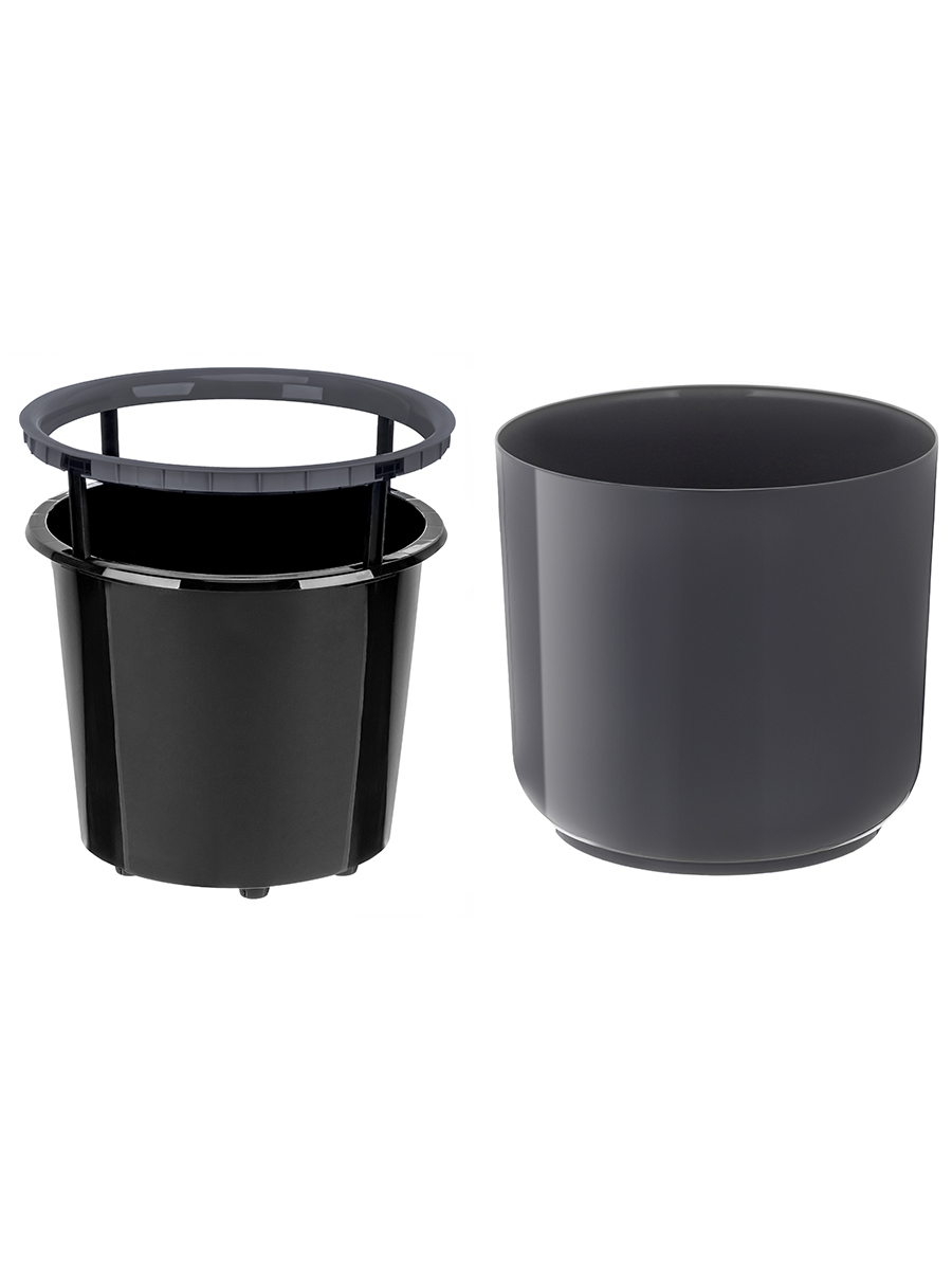 Горшок для цветов от бренда ELCASA — это удобное интерьерное решение для квартиры или дачи. Размер внешней ёмкости 30×30×28 см, объём — 17,3 литра. Поверхность в оттенке антрацит глянцевая. Размер дна 23х23 см. В комплекте поставляется дренажная вставка (ведро) чёрного цвета размером 30х30х27 см на 14,5 литров. Она имеет сверху выдвижную конструкцию по всей окружности, выполняющую роль ручки. Внутренний размер дренажной вставки 26х26х25 см. Кашпо можно использовать как напольное или настольное. Изделие выполнено из прочного и экологичного пластика – полипропилена. Материал устойчив к влаге и другим внешним воздействиям, благодаря чему цветочный горшочек можно использовать на улице. Подойдёт для украшения живыми цветами сада, балкона или террасы. Универсальный дизайн подходит под любой интерьер. Дренажное ведёрко чёрного цвета в комплекте избавляет комнатные цветы и садовые композиции из живых растений от застоя воды. Цветок в красивом горшке будет отлично смотреться на подоконнике, столе или полу. Создайте уютную зону отдыха в любом помещении, украсив её декоративными растениями. Благодаря универсальному дизайну подойдёт под любой стиль интерьера городской квартиры, а также гармонично впишется в атмосферу загородного участка как уличное кашпо. Не рекомендуется применять абразивные моющие средства. Беречь от механических повреждений. Станет полезным подарком на любой праздник для любителей живых растений и цветоводов. В коллекции бренда ELCASA представлено много функциональных товаров для дома, садоводства и предметов декора. Выберите варианты на свой вкус!