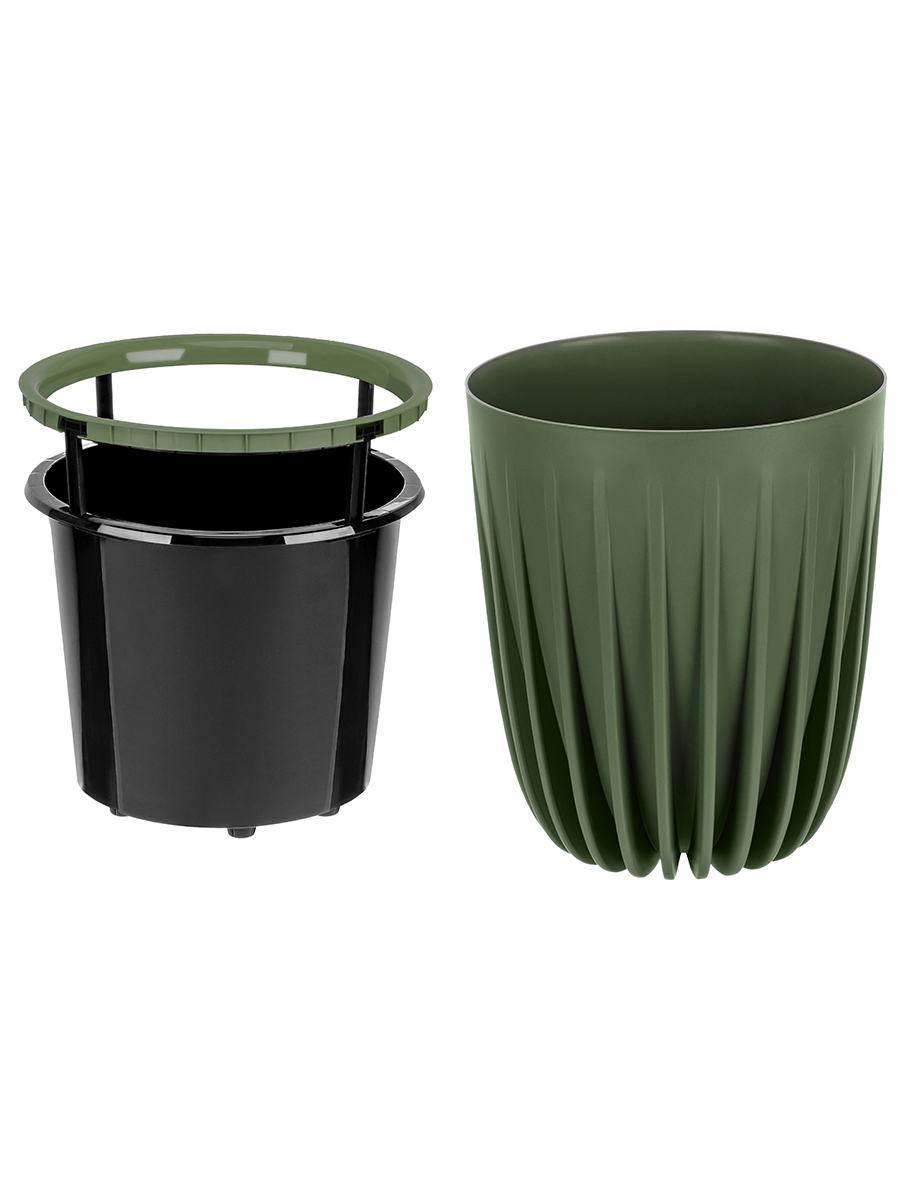 Горшок для цветов от бренда ELCASA — это удобное интерьерное решение для квартиры или дачи. Размер внешней ёмкости 30×30×36 см, объём — 18 литров. Размер дна 19,5х19,5 см. В комплекте поставляется дренажная вставка (ведро) чёрного цвета размером 30х30х27 см на 14,5 литров. Она имеет сверху выдвижную конструкцию по всей окружности, выполняющую роль ручки. Высота ножек дренажной вставки 2 см, её внутренний размер 26х26х25 см. Кашпо можно использовать как напольное или настольное. Изделие выполнено из прочного и экологичного пластика – полипропилена. Материал устойчив к влаге и другим внешним воздействиям, благодаря чему цветочный горшочек можно использовать на улице. Подойдёт для украшения живыми цветами сада, балкона или террасы. Внешняя часть кашпо в оттенке нефрит украшена рельефом. Оригинальный, но при этом универсальный дизайн подходит под любой интерьер. Дренажное ведёрко чёрного цвета в комплекте избавляет комнатные цветы и садовые композиции из живых растений от застоя воды. Цветок в красивом горшке будет отлично смотреться на подоконнике, столе или полу. Создайте уютную зону отдыха в любом помещении, украсив её декоративными растениями. Благодаря универсальному дизайну подойдёт под любой стиль интерьера городской квартиры, а также гармонично впишется в атмосферу загородного участка как уличное кашпо. Не рекомендуется применять абразивные моющие средства. Беречь от механических повреждений. Станет полезным подарком на любой праздник для любителей живых растений и цветоводов. В коллекции бренда ELCASA представлено много функциональных товаров для дома, садоводства и предметов декора. Выберите варианты на свой вкус!
