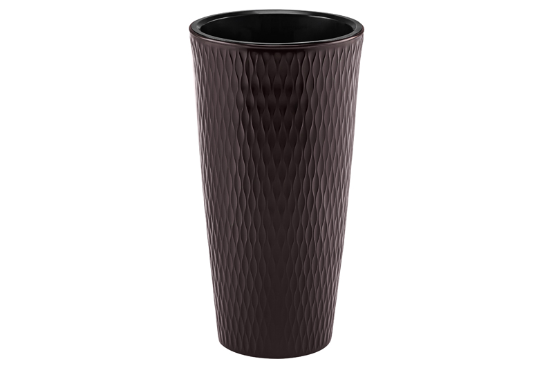 Напольное кашпо для цветов от ELCASA предназначено для организации пространства в вашем доме. Состоит из 2-х частей: внешней высокой подставки цвета венге и внутреннего съёмного горшка чёрного цвета. Размер кашпо – 25,5х25,5х48,5 см, объём – 15,5 литров, размер дна – 17х17 см. Размер ведра-вкладыша – 24,5х24,5х22,2 см, объём – 5,6 литров. Выполнено из полипропилена – прочного пластика, который не содержит бисфенол А и другие вредные вещества. Подойдёт под любой цветок. Ваза со вставкой покрыта краской, устойчивой к ультрафиолету, поэтому пригодна для использования как дома, так и на улице. Разместите кашпо на даче или балконе – горшочек не выгорит на солнце и долго прослужит. Большая пластиковая подставка имеет стильную круглую форму и сможет украсить не только квартиру, но и сад. Кашпо подойдёт как для искусственных, так и для живых комнатных цветов. В интерьерной вазе будет изящно смотреться пальма, фикус, папоротник и орхидея. Поставьте её на пол или посадите в неё своё любимое деревце, чтобы создать в комнате атмосферу тепла и уюта. Большой горшок для цветов займёт прекрасное место на вашей кухне, добавив интерьеру очарования благодаря наличию живых растений. Кашпо из прочного материала достаточно устойчиво, но при необходимости на дне можно расположить утяжелители (не входят в набор). Не рекомендуется применять абразивные моющие средства. Декоративное кашпо от ЭЛЬКАСА станет украшением вашего дома, сада или офиса и поможет создать в них гармонию и уют!