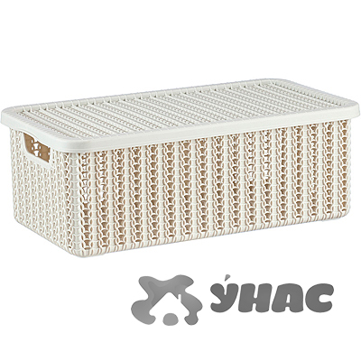 Коробка ВЯЗАНИЕ 6л с крышкой Бел Ротанг М2370 (6)