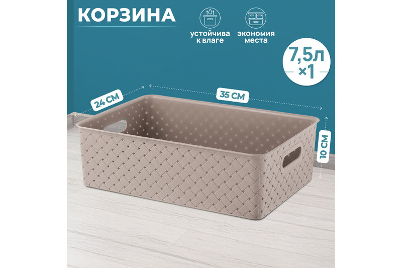 Корзина от ELCASA имеет цвет мокка. Размер изделия – 35х24,5х10,5 см, объём – 7,5 литра. Размер дна – 32,5х21,5 см. Универсальный дизайн и благородный цвет добавят стиля вашему интерьеру. Органайзер выполнен из полипропилена и станет незаменимым помощником для организации порядка в гардеробной, в комнате или на кухне. Преимущество данного материала над обычным пластиком заключается в его лёгкости и безопасности для здоровья. Используйте пластиковый контейнер для хранения как овощей и фруктов, так и кухонных и хозяйственных принадлежностей. Храните в ней косметику, бытовую химию или моющие средства, расположив в шкафчике или на открытом пространстве. Декоративное плетение с отверстиями обеспечивает циркуляцию воздуха и предотвращает порчу продуктов от недостатка кислорода. Удобные ручки облегчат перенос даже наполненного изделия. Корзину можно использовать для белья, полотенец, одежды и различных мелочей. Поставьте короб под раковину в ванной, возле стиральной машины или на полку. Разместите в детской комнате в качестве ящика для игрушек. Храните в ней садовые инструменты или используйте в гараже, на складе или на балконе под разнообразный инвентарь. Подойдёт для компактной перевозки вещей в багажнике машины. Не рекомендуется применять абразивные моющие средства. В ассортименте бренда ЭЛЬКАСА представлены корзинки разных объёмов, форм и цветов, что позволит собрать уникальный набор, отвечающий вашим потребностям. Создайте систему хранения в едином стиле и эффективно используйте каждый сантиметр пространства!