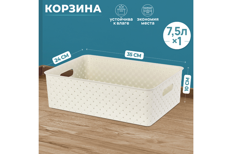 Корзина от ELCASA имеет цвет слоновой кости. Размер изделия – 35х24,5х10,5 см, объём – 7,5 литра. Размер дна – 32,5х21,5 см. Универсальный дизайн и благородный цвет добавят стиля вашему интерьеру. Органайзер выполнен из полипропилена и станет незаменимым помощником для организации порядка в гардеробной, в комнате или на кухне. Преимущество данного материала над обычным пластиком заключается в его лёгкости и безопасности для здоровья. Используйте пластиковый контейнер для хранения как овощей и фруктов, так и кухонных и хозяйственных принадлежностей. Храните в ней косметику, бытовую химию или моющие средства, расположив в шкафчике или на открытом пространстве. Декоративное плетение с отверстиями обеспечивает циркуляцию воздуха и предотвращает порчу продуктов от недостатка кислорода. Удобные ручки облегчат перенос даже наполненного изделия. Корзину можно использовать для белья, полотенец, одежды и различных мелочей. Поставьте короб под раковину в ванной, возле стиральной машины или на полку. Разместите в детской комнате в качестве ящика для игрушек. Храните в ней садовые инструменты или используйте в гараже, на складе или на балконе под разнообразный инвентарь. Подойдёт для компактной перевозки вещей в багажнике машины. Не рекомендуется применять абразивные моющие средства. В ассортименте бренда ЭЛЬКАСА представлены корзинки разных объёмов, форм и цветов, что позволит собрать уникальный набор, отвечающий вашим потребностям. Создайте систему хранения в едином стиле и эффективно используйте каждый сантиметр пространства!