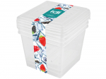 В комплект входят 3 контейнера объемом 0,75 л с крышками и удобные наклейки-стикеры для маркировки продуктов.