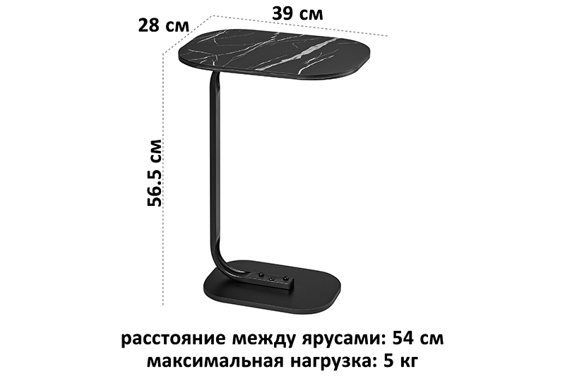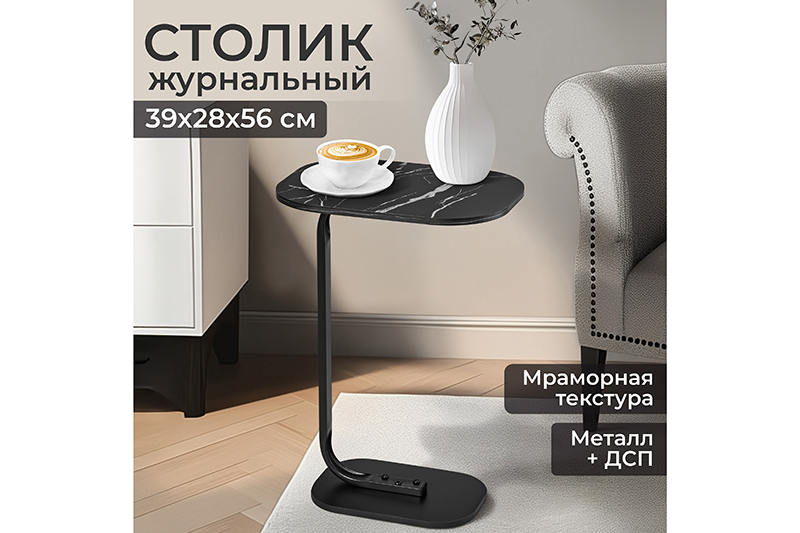 Столик журнальный 39*28*56,5 см "Черный мрамор", прикроватный малый