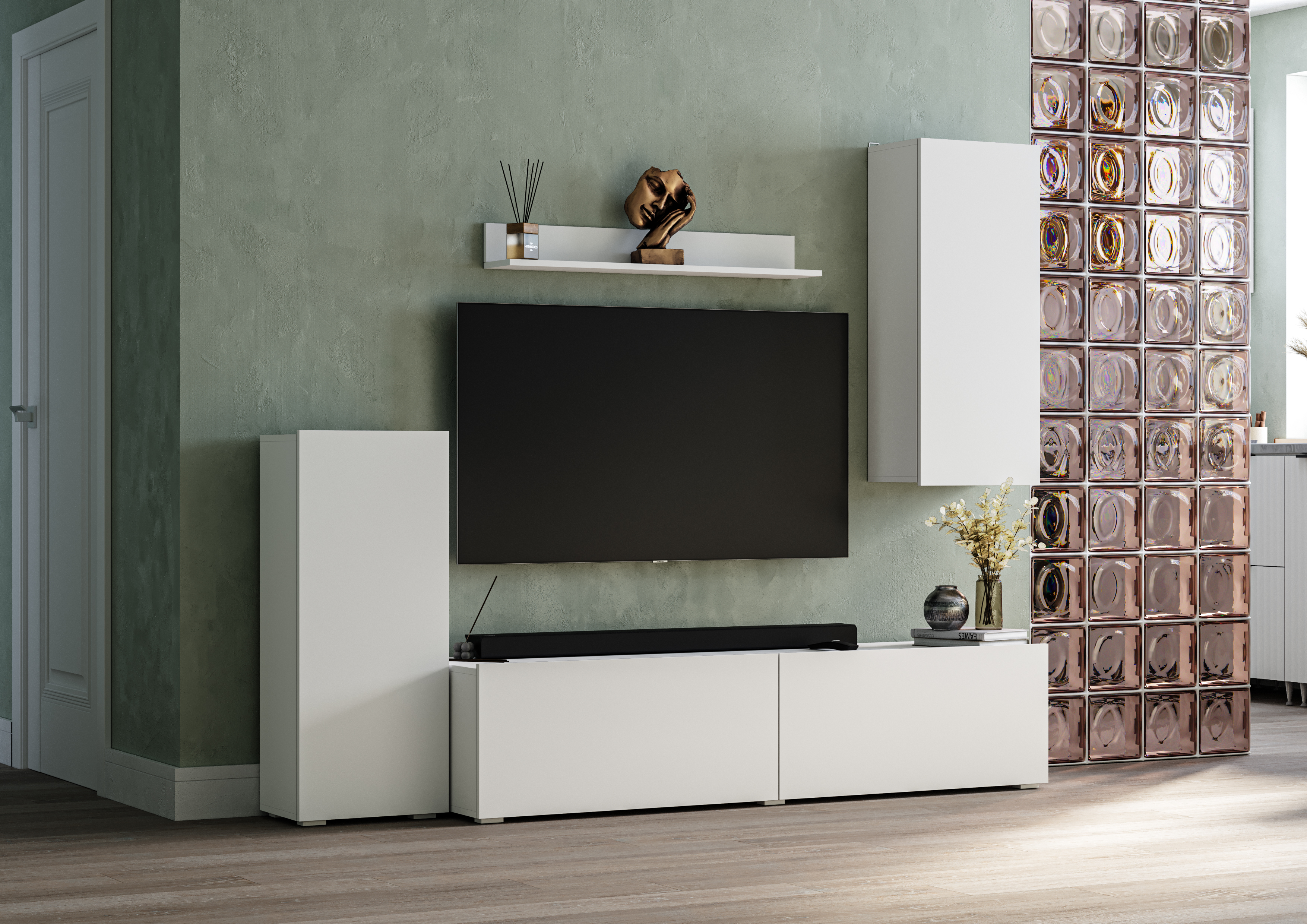 Стельвия Гостиная ЛДСП /////// белый/белый, дуб крафт серый/дуб крафт серый /////// 2048х1700х346 /////// 54 кг