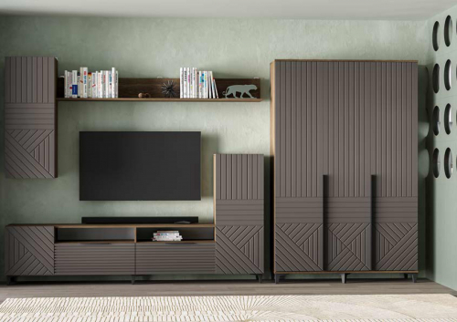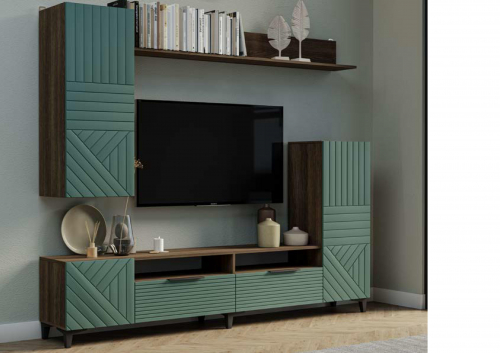 Палау Гостиная МДФ /////// Корпус Табак /Фасад белый софт, Корпус Табак /Фасад грей софт, Корпус Табак /Фасад эвкалипт софт, Корпус Табак / Фасад моно грин /////// 2230х2000х426 /////// 100 кг /////// 13 357р.