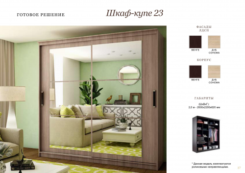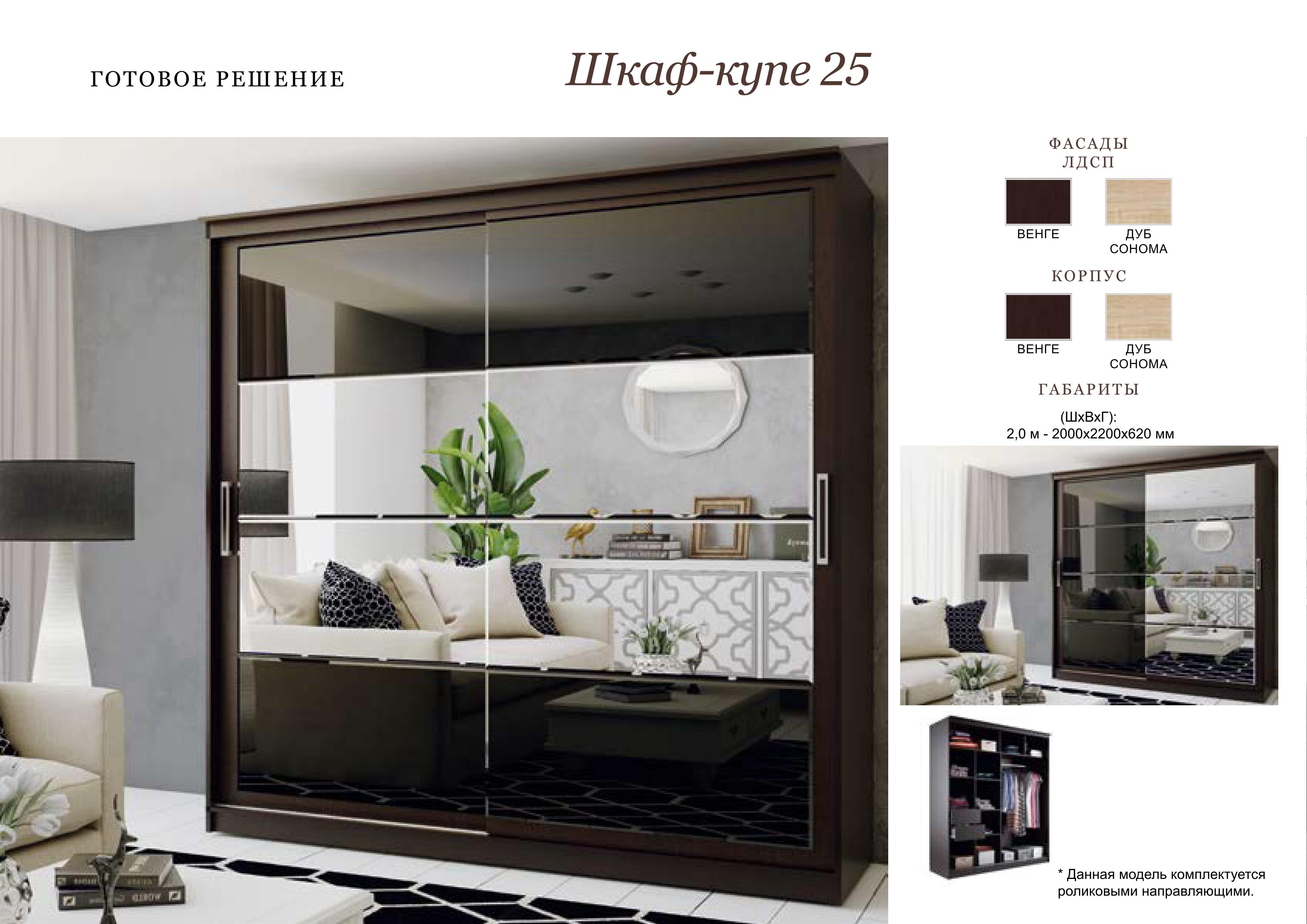 Шкаф-купе с зеркалами 25 2,0 (Наоми) /////// венге, дуб сонома /////// 2000х2200х620 /////// 248 кг /////// 25 297р.