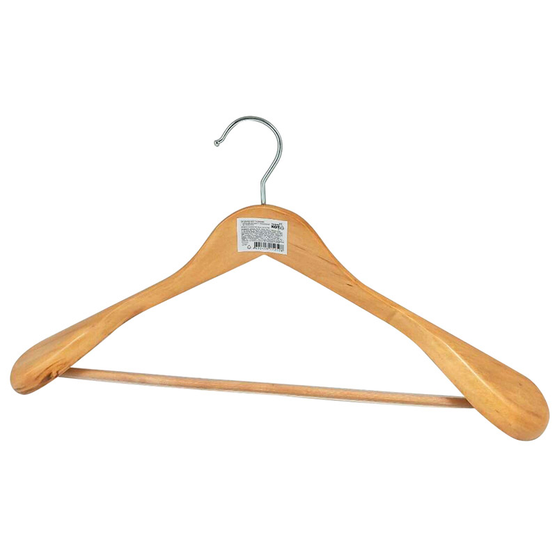 Вешалка деревянная 45см костюмная с широкими плечами и перекладиной с ПВХ покрытием