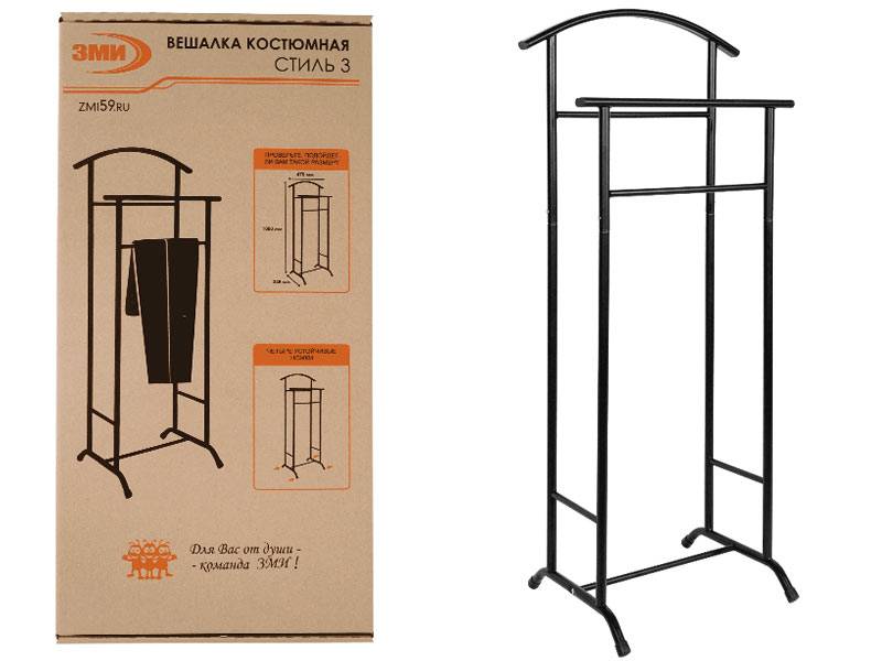 Вешалка костюмная "Стиль-3" чернаяКостюмная напольная вешалка предназначена для компактного хранения повседневной одежды. Она имеет плечико для пиджака или рубашки и несколько перекладин для брюк. От использования не остаются заломы и складки на одежде. Прочная и устойчивая конструкция выдерживает большое количество одежды (до 10 кг). Её можно использовать в спальне, гардеробе и даже офисе - прекрасно впишется в любой интерьер. Размер в собранном виде - 47х35х108 смЗаключаем договора по 44 ФЗ, 223 ФЗ