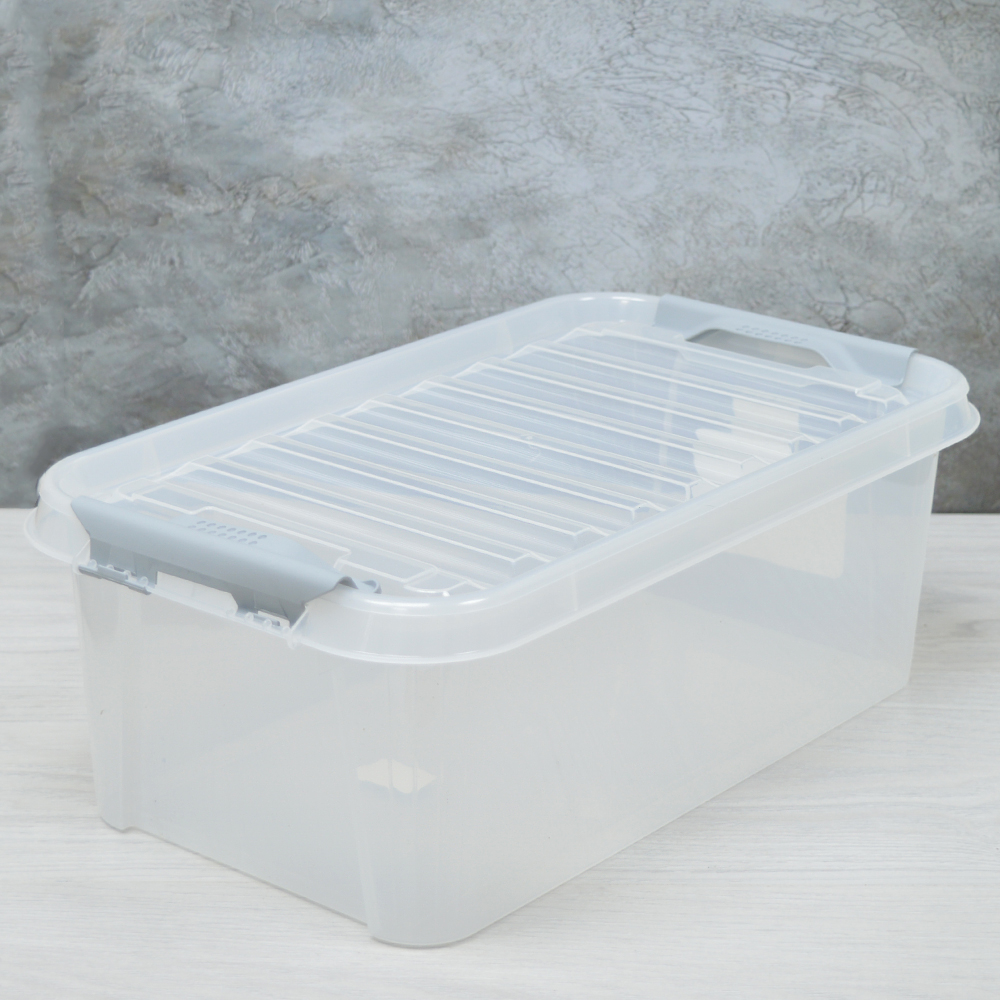 Ящик 7,8л с крышкой "Профи Комфорт"Отличное решение для организации пространства в любом помещении: гардеробной, гостиной и детской комнате. Вы сможете хранить в них одежду, обувь, аксессуары, игрушки, книги и другие предметы. Благодаря прозрачному пластику Вы без труда сможете рассмотреть содержимое ящика. Крышка плотно прилегает к корпусу и фиксируется боковыми ручками, что не позволяет проникнуть внутрь ни пыли, ни влаге.Заключаем договора по 44 ФЗ, 223 ФЗ