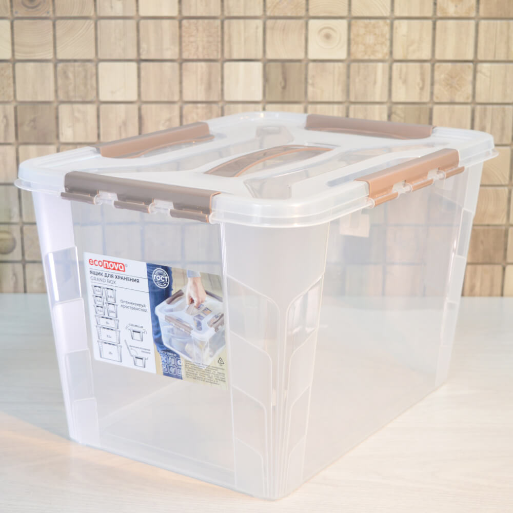 Ящик для хранения 20л "Grand box" с замками и ручкой, 390*290*245мм, коричневый