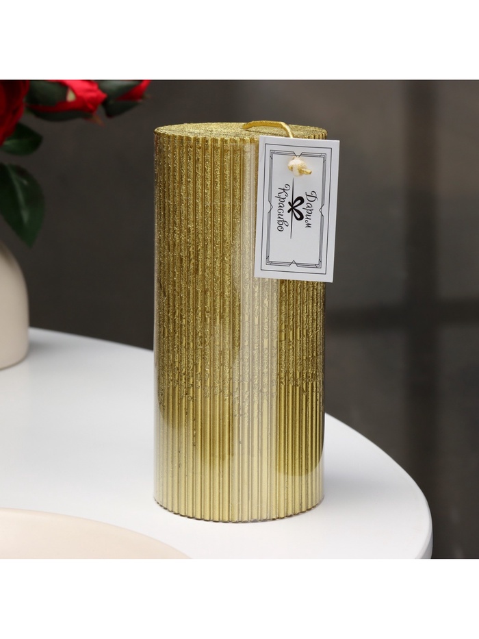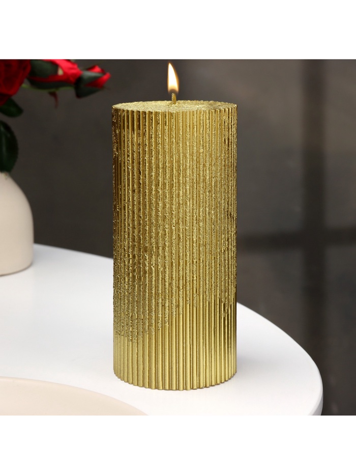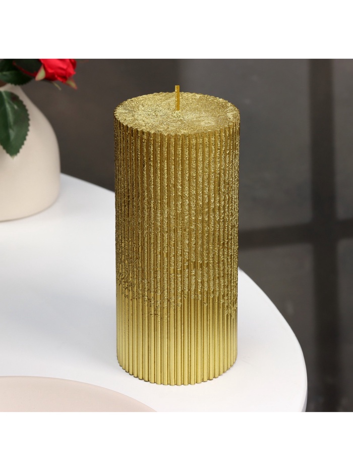 Представляем вашему вниманию элегантное решение для создания уютной атмосферы в доме — классическую свечу цилиндрической формы с золотистым отливом. Её лаконичный дизайн и универсальные размеры (7×15 см) делают её идеальным выбором как для повседневного использования, так и для особых случаев.