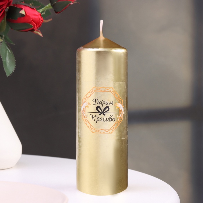 УЦЕНКА Свеча «Столбик», золотая, 5.5×15 см