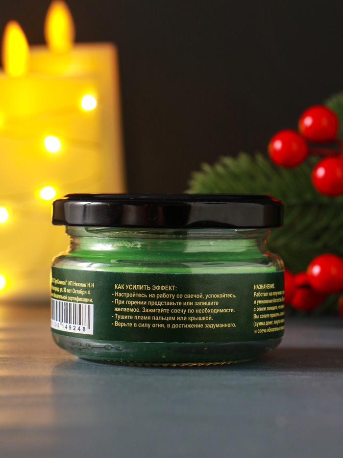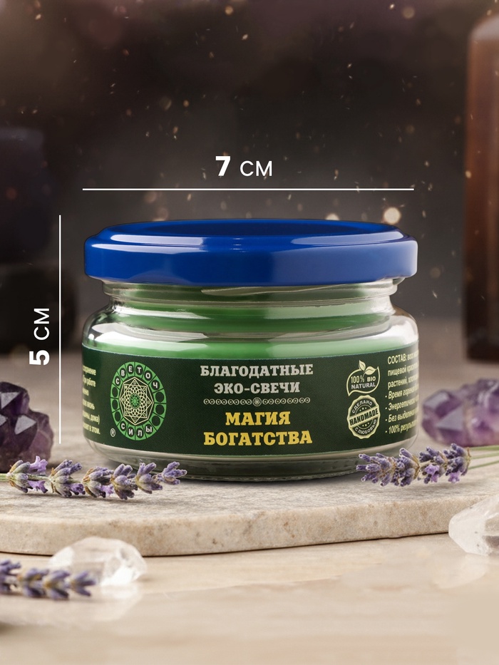 Эта зелёная свеча в стеклянной банке — ваш личный талисман для привлечения изобилия. Созданная из натурального воска для ритуалов обогащения, она становится центром практики денежной магии. Горит до 14 часов, давая вам время сфокусироваться на своих намерениях.