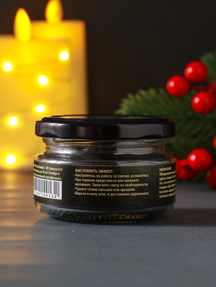 * Свеча-талисман размещена в стеклянной банке диаметром 7 см для устойчивости и безопасности.
