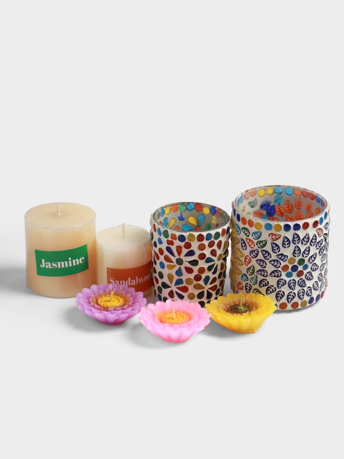 Набор свечей «Сандал. Жасмин», 5 шт., 2 подсвечника