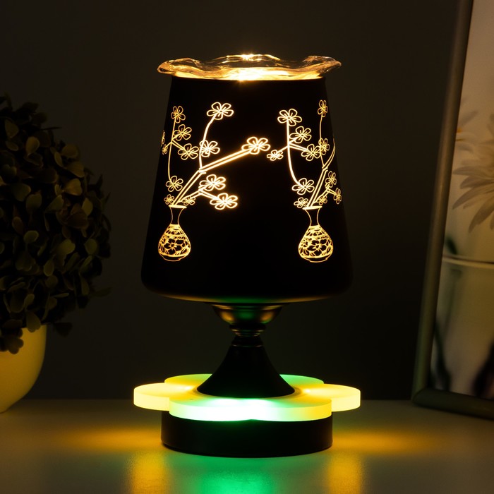 Аромалампа с подсветкой «Цветок» E14 40 Вт +RGB черный 12.5×12.5×23 см