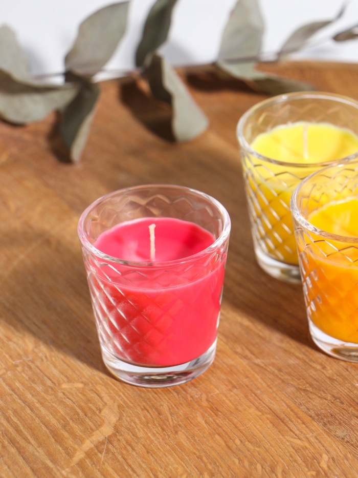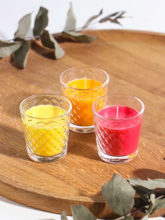 Ароматическая свеча в стакане, набор 3 шт., по 50 мл, 10 ч, 32 г, земляника, манго, цитрус