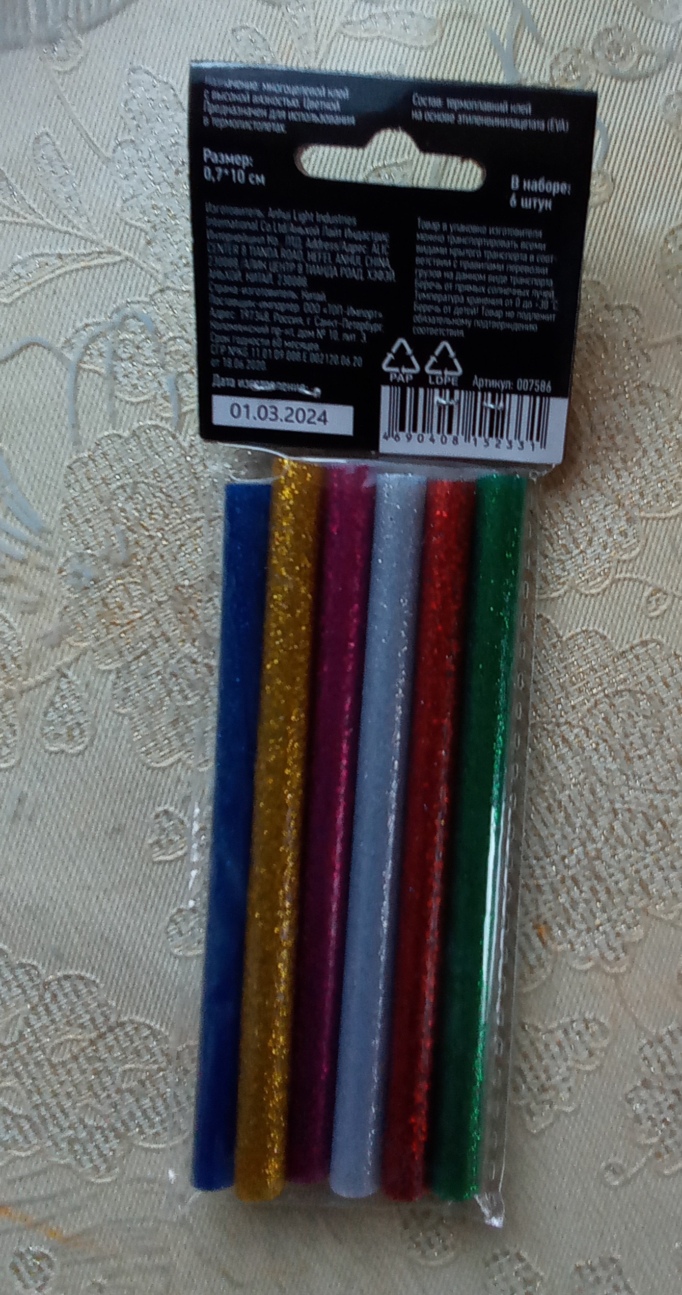 Отзывы и вопросы о товаре «Стержни клеевые цветные, с блестками, 7*100мм 6шт»