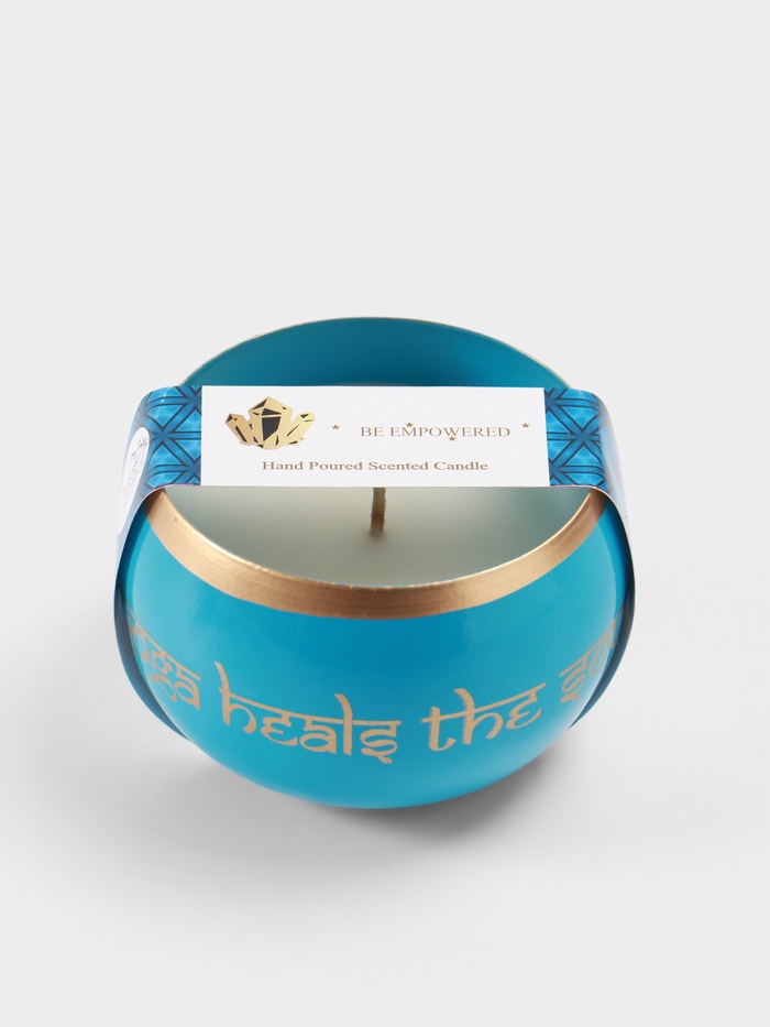 Свеча в чаше Yoga heal the soul, 200 г, 8.5×7 см, соевый воск, голубая