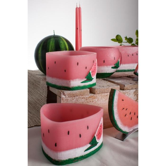 Наполните пространство летним настроением с этим оригинальным треугольным подсвечником. Его сочный розовый цвет и арбузный аромат создадут атмосферу тепла и уюта даже в самый хмурый день. Компактные размеры (15×15×9.5 см) позволяют разместить его на любом столе или полке, превратив обычный вечер в маленький праздник.