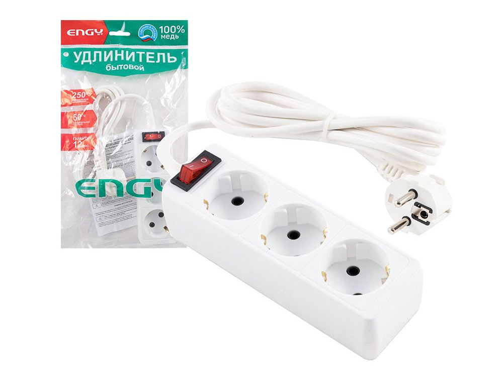Удлинитель с выключателем 2м 3 розетки с/з ENGY Гранд ПВС 3*0,75• длина провода - 2 м• 3 розетки• сечение 3х0,75 мм• тип электрической вилки С6• имеют заземляющие контакты• напряжение - 250ВЗаключаем договора по 44 ФЗ, 223 ФЗ