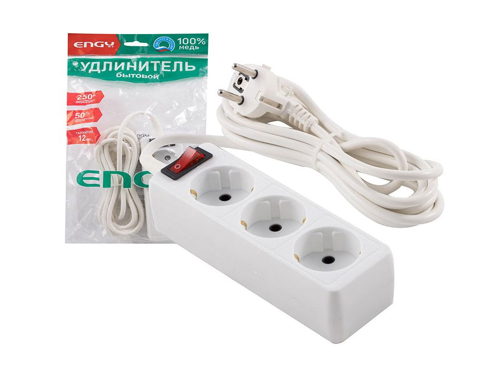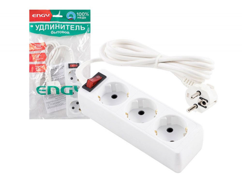 Удлинитель с выключателем 3м 3 розетки с/з ENGY Гранд ПВС 3*0,75