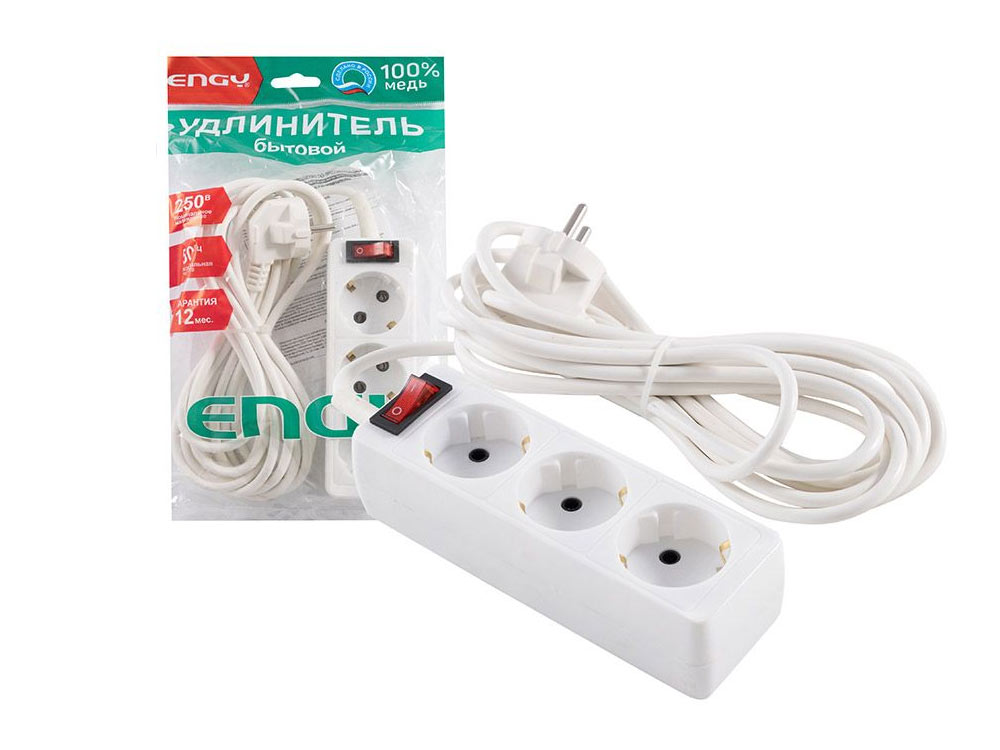 Удлинитель с выключателем 5м 3 розетки с/з ENGY Гранд ПВС 3*0,75• длина провода - 5 м• 3 розетки• сечение 3х0,75 мм• тип электрической вилки С6• имеют заземляющие контакты• напряжение - 250ВЗаключаем договора по 44 ФЗ, 223 ФЗ