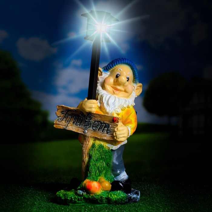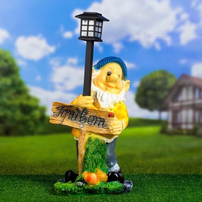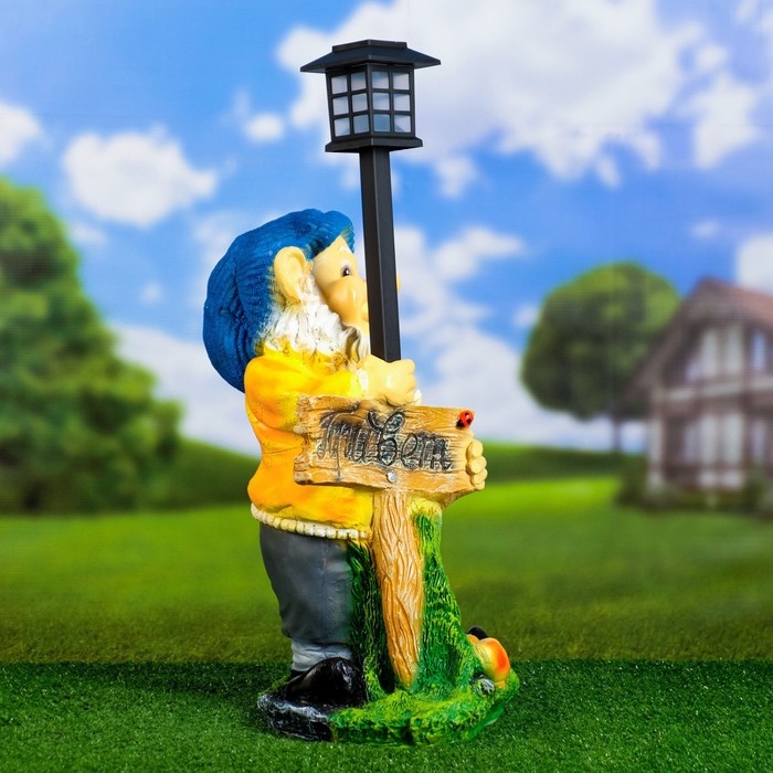Садовая фигура - фонарь из полистоуна «Гном с табличкой», 30×27×44 см