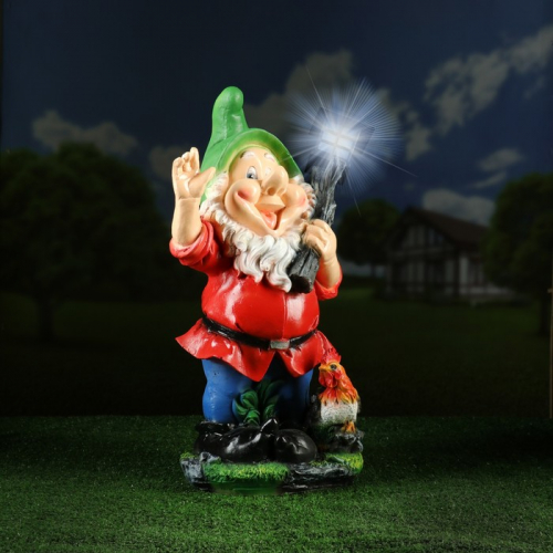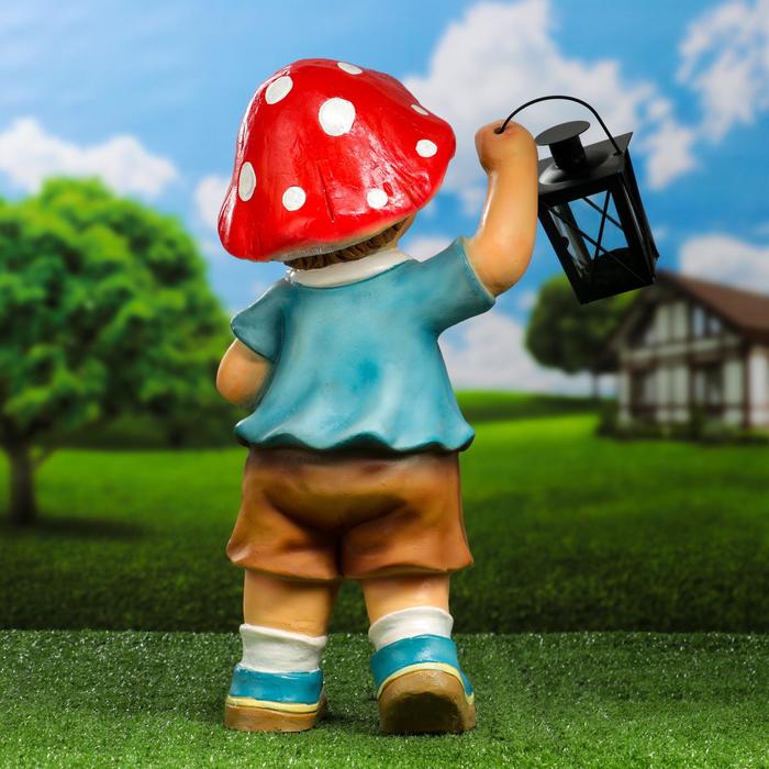 Садовая фигура из полистоуна «Гномик-грибочек с фонарём», 21×15×45 см