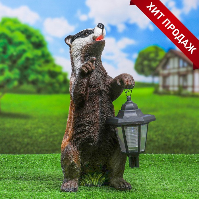 Садовый фонарь "Барсук с фонарем" 16х18х42см