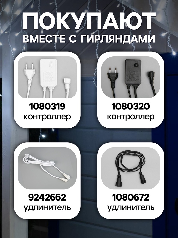 Гирлянда «Бахрома» 3×0.6 м, IP44, УМС, белая нить, 160 LED, свечение белое, 220 В