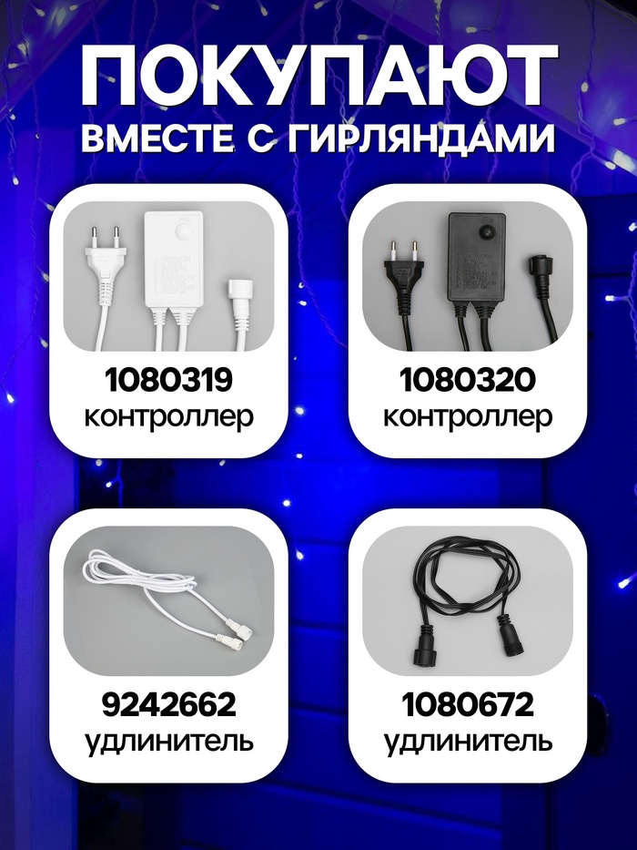 Гирлянда «Бахрома» 3×0.6 м, IP44, УМС, белая нить, 160 LED, свечение синее, 220 В