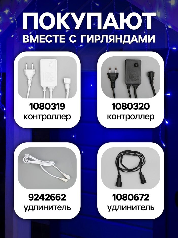 Гирлянда «Бахрома» 3×0.6 м, IP44, УМС, прозрачная нить, 160 LED, свечение синее, 220 В