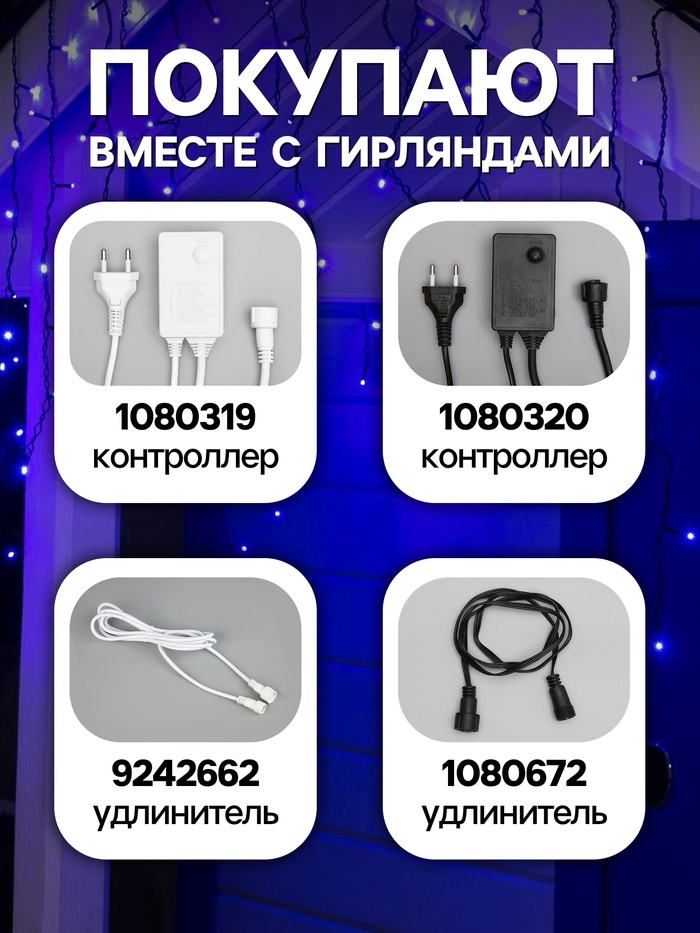 Гирлянда «Бахрома» 3×0.6 м, IP44, УМС, тёмная нить, 160 LED, свечение синее, 220 В