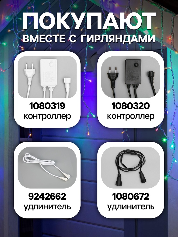 Гирлянда «Бахрома» 3×0.9 м, IP44, УМС, прозрачная нить, 232 LED, свечение мульти, 220 В