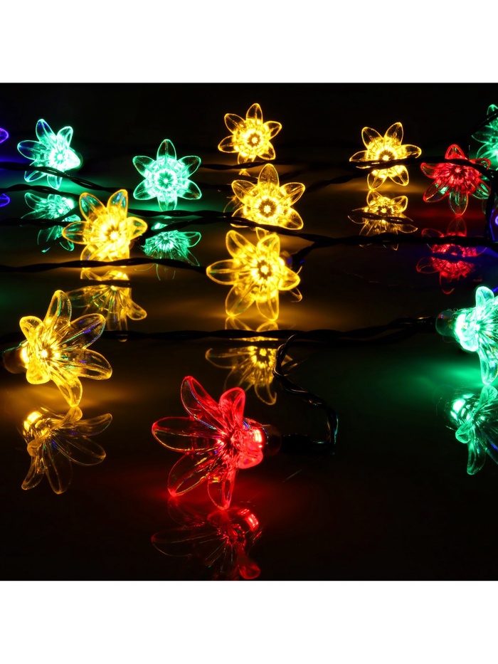 Гирлянда «Нить», 4.5 м, уличная, с насадками «Цветок», IP44, 30 LED, 2 режима, солнечная батарея, тёмная нить, свечение мульти