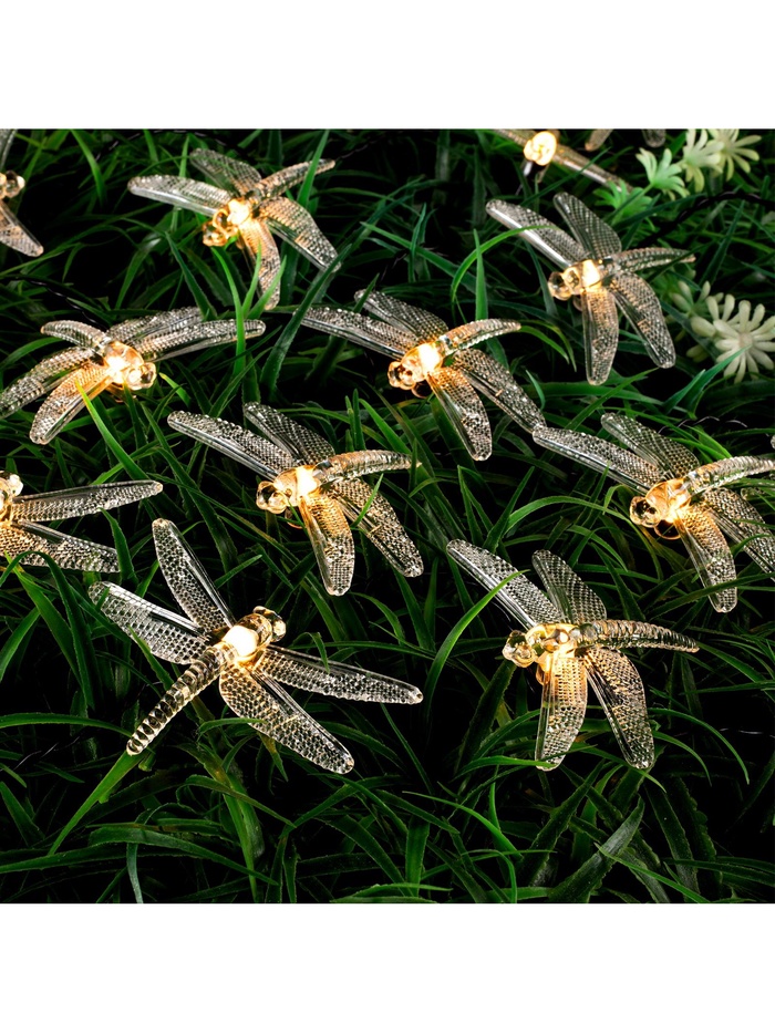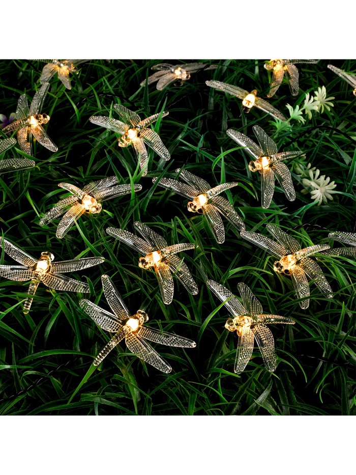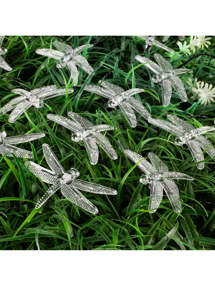 Гирлянда «Нить», 4.5 м, уличная, с насадками «Стрекоза», IP44, 30 LED, 2 режима, солнечная батарея, тёмная нить, свечение тёплое белое