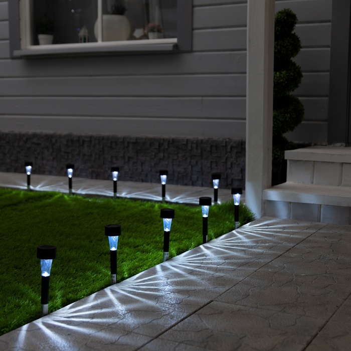 Набор садовых светильников «Трапеция», уличных, на солнечной батарее, 4.5×30×4.5 см, 1 LED, свечение белое, 10 шт.