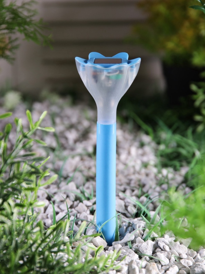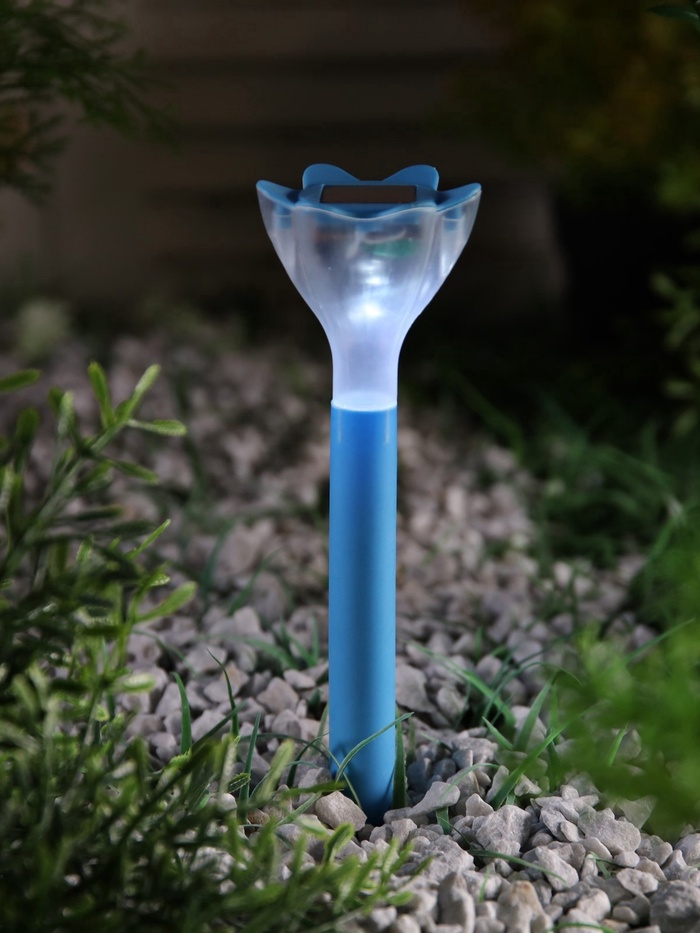 Садовый светильник «Цветок голубой», уличный, на солнечной батарее, 6×29×6 см, 1 LED, свечение белое