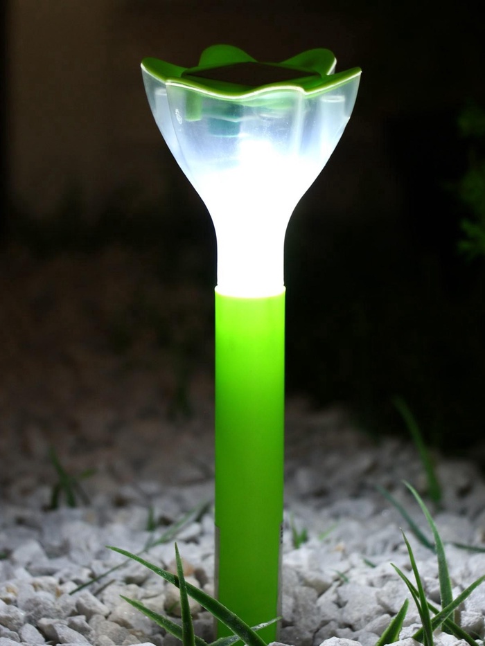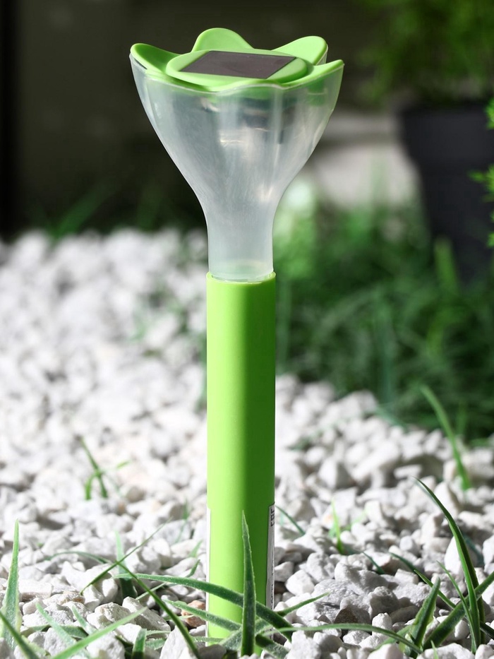 Садовый светильник «Цветок зелёный», уличный, на солнечной батарее, 6×29×6 см, 1 LED, свечение белое