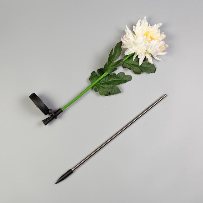 Садовый светильник «Хризантема белая», уличный, на солнечной батарее, 80 см, 1 LED, свечение белое