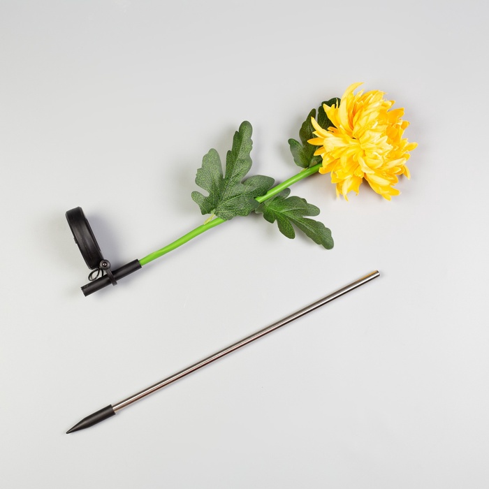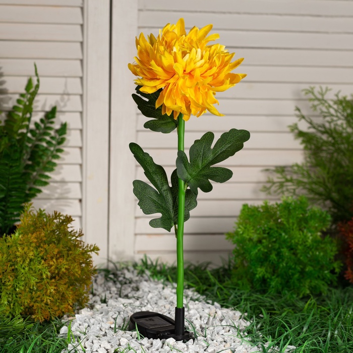 Садовый светильник «Хризантема жёлтая», уличный, на солнечной батарее, 80 см, 1 LED, свечение белое